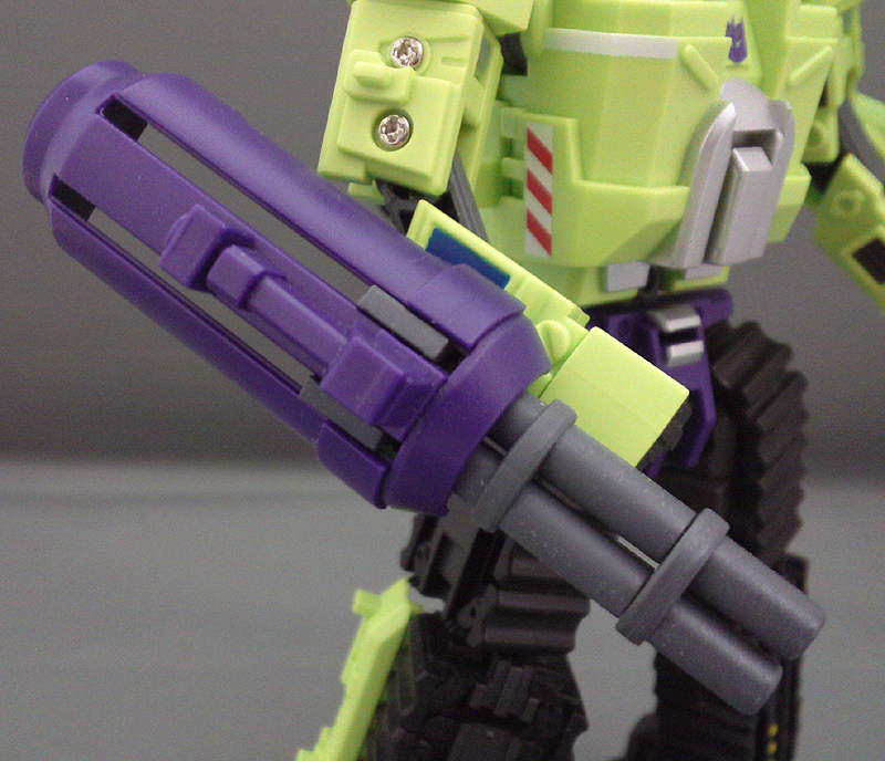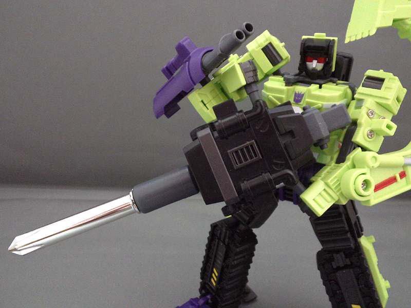そして、ブルドーザー61と同じく、合体用前腕部にダンプトラック61に付属するドライバー状の刺突用武器、パイルドライバーを取り付けて、大型刺突武器として装備出来ます。