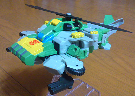 元のグリーンカラーから、ブラックとカーキに変更され、所属もデセプティコンになっています。